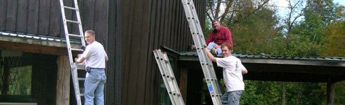 The Ski Lodge had not been painted since it was built around 15 years ago. Ken Packard, Jim Alexander, and Karl Dahlstrom led the crew of about 12 workers. The crew worked from 9 am to 3 pm and painted the entire exterior of the Ski Lodge. We were glad to contribute toward the continued operation of this treasured local resource.