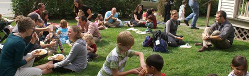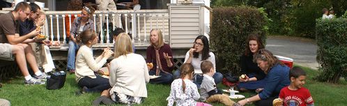 On Sunday, September 26th CRC held a cook-out to welcome the Dartmouth students back to campus for the Fall term. Andrew Schuman and Bethany Mills organized the cook-out to help connect Dartmouth students to the rest of the church body. They prepared over 60 pounds of pulled pork with the help of Matt Lewis. Families brought side dishes and desserts to share. Groups gathered inside and outside the house to eat, meet new friends, and enjoy the beautiful day. Over 140 people were in attendance. You can see from the pictures that it was a great time!