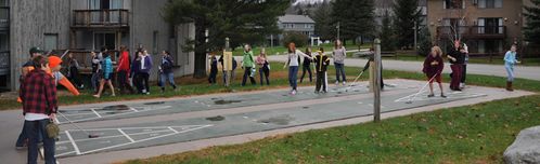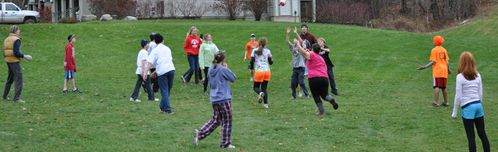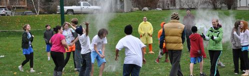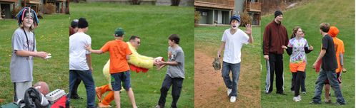 Some of the fun included a football game with a bag of flour, a turkey, a dozen eggs, and Jeff in a chicken suit; a game of spoons; a spitball competition; and learning shuffleboard.